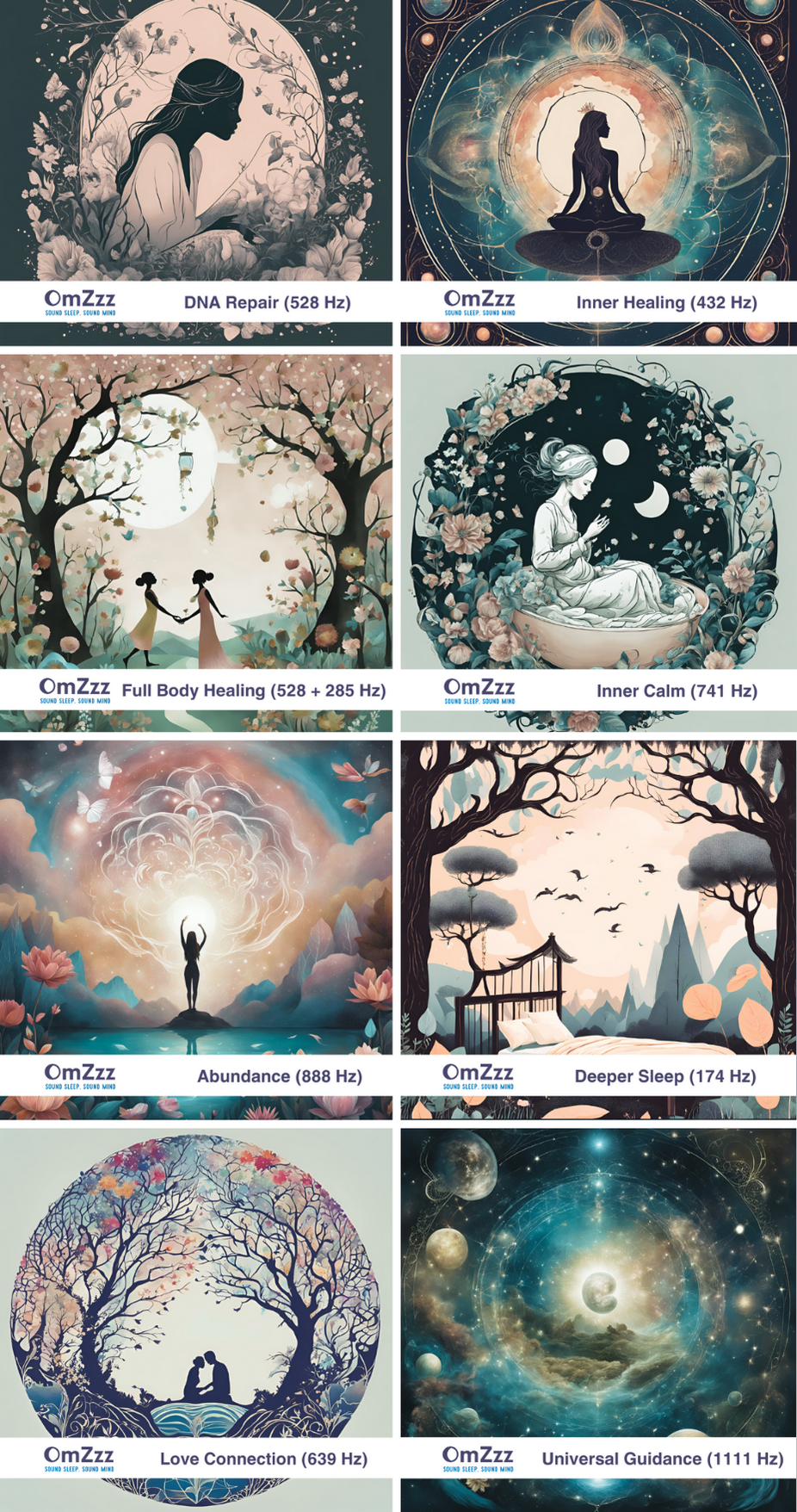 OmZzz uses the ancient Solfeggio frequencies to support your mind, body, and spirit.